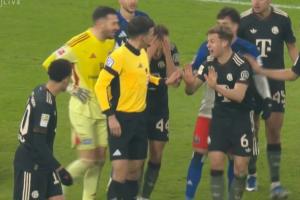 第99分钟,斯坦尼西奇被武什科维奇推搡撞向另一名汉堡球员,主裁判判罚进攻犯规,引发拜仁球员更激烈的抗议。