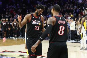 赛后,恩比德接受了记者采访。谈到乔治被禁赛,他说道:“我知道人们对他的表现褒贬不一,但你无法找到替代他的人。”
