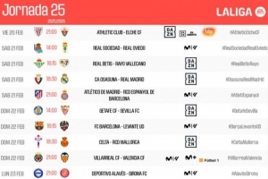 体育资讯2月2日讯 西甲官方公布了联赛第25轮各场具体开球时间(北京时间):