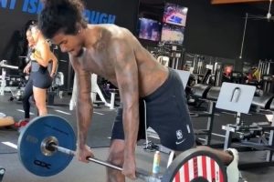 体育资讯9月12日讯 今日洛杉矶一位健身教练Alexis Lawson晒出太阳球星杰伦-格林高难度训练照。