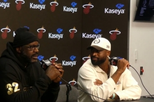 体育资讯2月4日讯 奥尼尔和韦德出席热火夺冠20周年纪念活动新闻发布会。