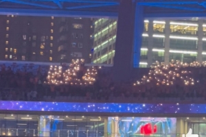 记者杨翼在社媒晒出视频,显示远征客场的泰山球迷用闪光灯拼出“山东”二字支持球队。杨翼为视频配文写道:“山东球迷很有创意啊,在客队看台区用闪光灯拼出来‘山东’两个字。”