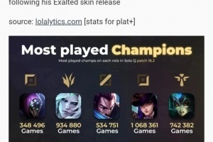 体育资讯2月7日讯 近日,外媒统计称破败王佛耶戈皮肤推出后,外服登场率从20涨到第二,仅次于凯特琳!