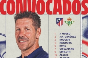 体育资讯2月8日讯 北京时间明天凌晨,马竞将在西甲第23轮比赛中主场对阵贝蒂斯,马竞公布了此役的球员名单。卡尔多索、巴里奥斯缺席,瑟尔洛特回归。