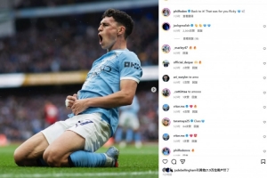 本场比赛福登首开记录,这也是他自今年1月以来首次在英超破门,他也在个人社媒晒出滑跪庆祝照片,配文写道:“重回正轨,进球献给里奇。”