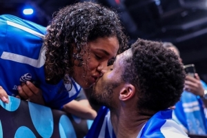 “在这次欧锦赛期间,我们虽然远隔千里,但还是庆祝了我们的结婚纪念日、孩子的开学第一天以及我们美丽女儿的两岁生日。但每一次牺牲都是值得的,因为能看到你实现梦想。我承诺,无论发生什么,我都会陪伴在你身边,我的爱人。继续前进吧,我就在这里支持你,我们还没有结束呢💛!”