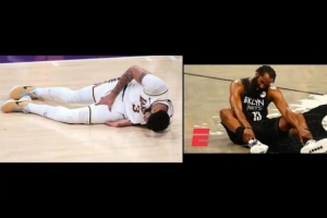 2018年,杜兰特与哈登决战时,目睹保罗受伤倒下,火箭倒在伤病之前;一年后,杜兰特自己受伤,没能完成三连冠。2021年,三巨头会集,且都在巅峰状态,然而哈登和欧文陆续受伤,杜兰特几乎要凭一己之力将网队推过雄鹿了,然而毫厘之差。