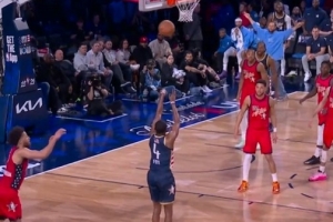 科沃德:库里晃晕我进后撤步三分+抖肩 这是我的欢迎来到NBA时刻