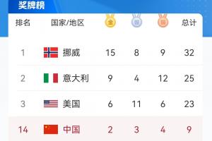仅剩27金!冬奥奖牌榜:中国队2金3银4铜排名升第14,挪威15金第1