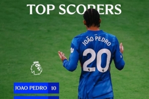 切尔西官方列本赛季队内英超进球榜,若昂·佩德罗以10球居首,帕尔默、恩佐8球并列第二。