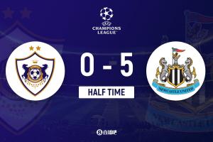 第3分钟,戈登接直塞杀入禁区内右侧,右脚抽射闪击破门,纽卡1-0领先卡拉巴赫↓