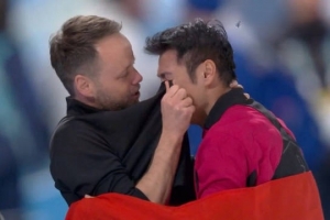 冰场暖心一幕:外籍教练德威特用衣角为宁忠岩擦眼泪