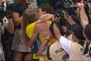 赛后,杜普兰蒂斯突破重重记者包围找到未婚妻,两人旁若无人激情拥吻,周围记者举起相机一顿猛拍。