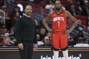 火箭(34-21):杜兰特30分6板3助、史密斯21分4板1助、申京16分6板6助3帽、阿门12分10板7助3断、伊森11分12板4助、谢泼德10分2板3助、卡佩拉4分1板、芬尼-史密斯2分3板。