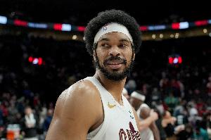 上半场,骑士中锋贾勒特·阿伦高效发挥,打了16分钟9投7中,罚球2中2拿到16分10篮板1助攻2抢断1盖帽,正负值+2。