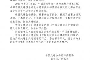 中国足球协会将依照《中国足球协会纪律准则》的规定,坚决严肃处理各类违规违纪行为,净化赛场风气。望各参与方能够共同维护比赛秩序和来之不易的足球发展环境。