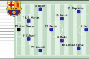 体育资讯3月3日讯 北京时间明天凌晨4点,巴萨将在国王杯半决赛次回合比赛中主场对阵马竞,首回合巴萨0-4落败,《阿斯报》预测了巴萨此役的首发阵容。