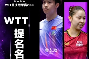 WTT重庆冠军赛外卡名单:国乒选手温瑞博、黄友政、石洵瑶入围