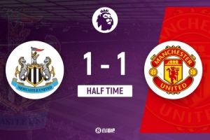 体育资讯3月5日讯 北京时间3月5日04:15,英超联赛第29轮曼联挑战纽卡的比赛在圣詹姆斯公园球场进行,上半场特里皮尔开场传中中柱,梅努抽射造险,拉姆斯代尔献神扑,拉姆塞两黄一红被罚下,B费送点,戈登点射破门,B费助攻卡塞米罗头球扳平,半场结束,曼联1-1纽卡。