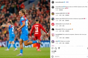 略伦特也在赛后通过社媒晒出自己的比赛照,并配文:“我们在安菲尔德已经倾尽全力,仍然有很多需要改进之处,我们比以往任何时候都更加团结。”