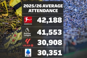 体育资讯3月5日讯 德甲统计了本赛季欧洲联赛的场均上座人数,并列出榜单,德甲居首,英超、西甲二三位,德乙排名第5位。