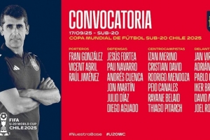 西班牙足协在官网写道:“西班牙U20国家队即将出征智利世界杯,21名年轻球员将肩负荣誉与梦想,迎接这一全球最负盛名的青年足球赛事。主教练帕科-加拉尔多在周三公布了参赛名单,球队将于9月22日启程,以最佳状态迎接比赛的到来。”