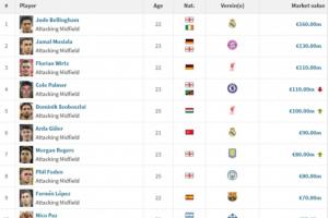 体育资讯03月09日讯 德转今日更新英超身价,索博身价升至1亿欧,在进攻型中场身价榜上超越居莱尔,升至第5。