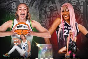 在得票方面,阿兰娜-史密斯和阿贾-威尔逊都是29票,西雅图风暴的加比-威廉姆斯拿到9票,菲尼克斯水星的艾丽莎-托马斯获得3票,另外2票归明尼苏达山猫的娜菲萨-科利尔。