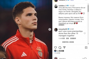 效力于本菲卡的乌克兰中场苏达科夫赛后在ins上写道:“一场惨痛的失利,我们需要更坚强,昂首挺胸继续前进,感谢球迷们直到最后的支持。”