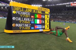 体育资讯09月19日讯 东京田径世锦赛男子三级跳远决赛,在意大利选手达拉瓦莱最后一跳17米64刷新PB(个人最好成绩)的情况下,葡萄牙选手皮查多最后一跳反绝杀,17米91刷新今年世界最好成绩,第二次夺得世锦赛金牌。