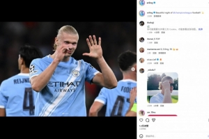 本场比赛哈兰德破门,打进个人欧冠第50球,他也在个人社媒晒出以“50”手势庆祝进球照片,配文写道:“美妙的欧冠之夜!”