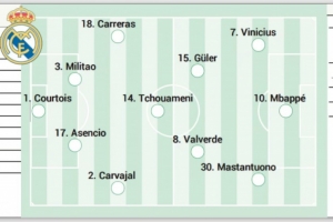体育资讯9月20日讯 《阿斯报》发文,预测了皇马的首发阵容。