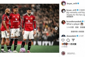 曼联前锋姆伯莫社媒晒出比赛照片,并写道:“今天展现强大心态,取得重要胜利!再次感谢球迷们的支持!”