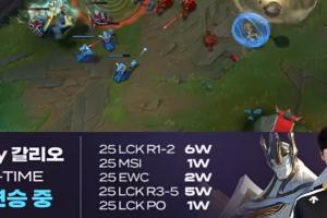 赛中导播给出数据,Chovy加里奥15连胜,加上这一场已经16连胜了。