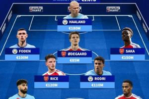 赛前,德转盘点了对阵双方的身价最贵11人阵容,这套阵容总身价达到了惊人的10.7亿欧,哈兰德凭借1.8亿欧的身价领衔,萨卡1.5亿欧元次之。