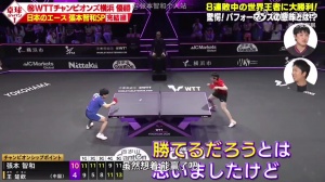 张本智和:“这个手势(手指后背),还有展示球衣的动作,在青奥会上输给他时,他做过的两个庆祝动作。”