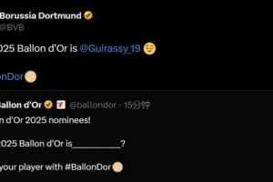 体育资讯9月22日讯 多特官方发推调侃,表示吉拉西是2025年的金球奖得主。