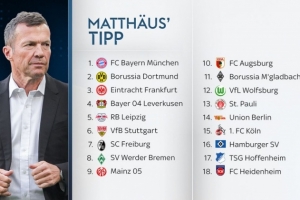 马特乌斯、哈曼、穆斯塔菲全部看好拜仁夺冠,马特乌斯预测多特蒙德、法兰克福、勒沃库森排名第二至第四,霍芬海姆和海登海姆则是惨遭降级。
