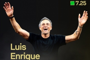 恩里克上赛季率巴黎获得欧冠冠军、法甲冠军、法国超级杯冠军和法国杯冠军。