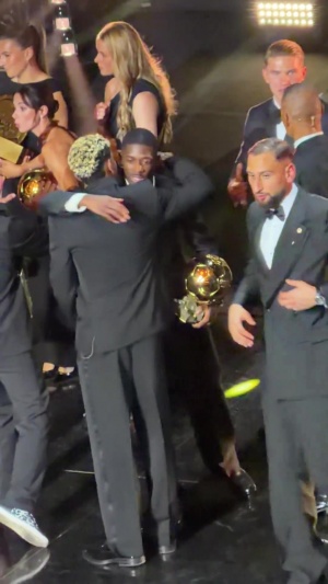 体育资讯09月23日讯 2025年金球奖,登贝莱加冕荣誉。现场仪式结束后,亚马尔等待在一旁,祝贺并拥抱了登贝莱。