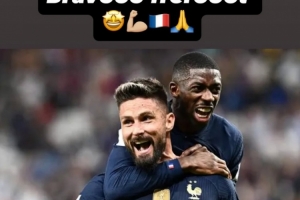 吉鲁在社媒配文写道:“太棒了,我的兄弟登贝莱!”
