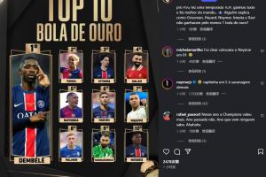 巴西球星内马尔回复了一则记者发布的金球奖排名的图片,内马尔表示:😂拉菲尼亚第五?这简直是疯了