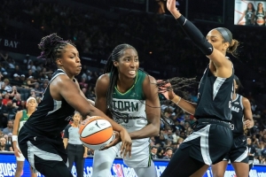 决胜局堪称惊心动魄。双方比分交替领先,比赛进入白热化阶段。阿贾-威尔逊延续了出色的状态,全场狂砍38分5篮板3助攻3抢断2盖帽,在攻防两端都展现出了超强的统治力。关键时刻,杰基-杨命中准绝杀补篮,帮助王牌以74-73险胜风暴,涉险晋级四强。此役过后,王牌连续7年晋级半决赛,他们将在半决赛中对阵印第安纳狂热。