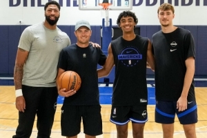 独行侠官方晒出其与独行侠球星浓眉、弗拉格和克里斯蒂等人的合影。