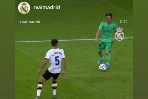 莫德里奇更新社媒动态,晒出自己与维尼修斯外脚背射门的对比视频。