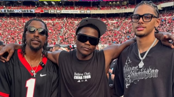 体育资讯09月28日讯 森林狼球星爱德华兹重返母校佐治亚大学,观战NCAAF佐治亚大学vs阿拉巴马大学的橄榄球赛。