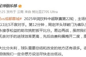 体育资讯8月23日讯 在中超联赛第22轮中,云南玉昆主场1-5负于成都蓉城。由于球队连续的大比分输球,云南玉昆俱乐部也在赛后公开致歉。