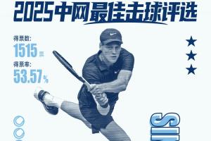 最终辛纳用一记放小球后衔接反拍斜线穿越,获得吧友超5成投票,当选ATP第二轮#中网最佳击球#!