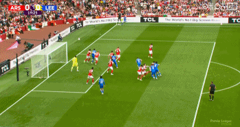 体育资讯08月24日讯 英超第2轮阿森纳vs利兹联,第20分钟利兹联角球机会,斯特鲁伊克抢到落点顶正,拉亚将球扑出力保球门不失!