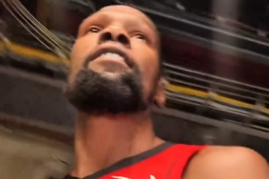杜兰特身穿火箭球衣参加媒体日活动:火箭球迷们,我来啦。能够成为一名火箭成员太棒了。让我们开启一个杰出的赛季吧,伙计。让我们冲,我已经等不及了看到你们来到丰田中心。爱你们。”